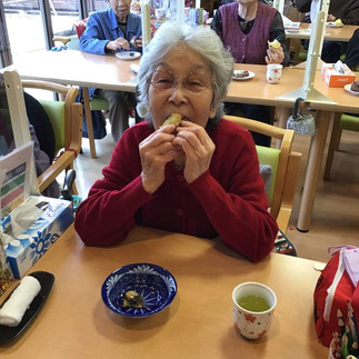 おやつの時間に皆で美味しく食べましたよ!皆様と~っても良い笑顔です!