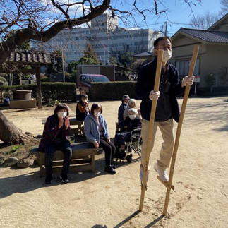 最後に竹馬体験ができるとの事で、職員が竹馬に乗ってみました!!