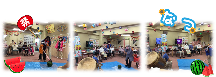 今年のお祭りでは縁日や屋台はもちろん、職員の太鼓演奏なども行われ、納涼会がグンッと盛り上がった一週間でした。今回はすべての曜日を思い出にまとめてみましたので、